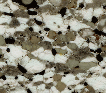 The black, white, greenish, and brownish grains correspond to different minerals. A useful piece of information for geologists is to determine what percentage of the sample corresponds to each mineral and there is a time-consuming process of manually counting the grains. Another technique is to use image analysis techniques to count number of the pixels that are close to a particular color. For example, if we count the pixels that are white then divide by the total number of pixels in the image then we get an estimate for the percentage of the white mineral.