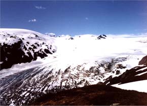 | Upon arrival at the airport, you will be transported by dog sled to your hotel. First, your dog team must navigate this ice field | ![]() |
